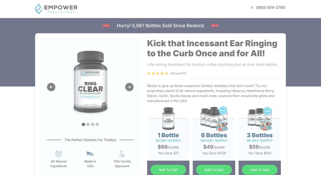 Ring Clear™ Official Website – buy now for $49 per bottle with the 180-day best value bundle.